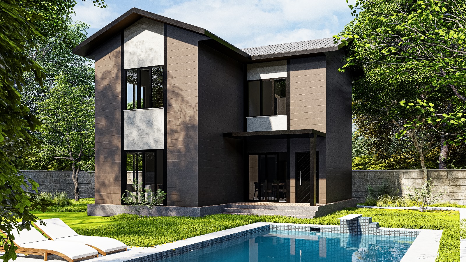 Modern mimari çizgilerle tasarlanan dış cephe; ahşap dokular, doğal renk geçişleri ve dengeli kütle oranlarıyla zamansız ve prestijli bir görünüm sunar. Bu tasarım, hem şehir içi hem de doğa içinde konumlanan arsalar için uyumlu bir mimari karakter oluşturur.