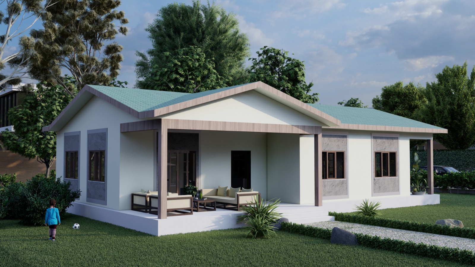 Doğayla uyumlu dış cephe tasarımı, sade ama zamansız çizgileriyle hem şehir çevresinde hem de müstakil arazilerde rahatlıkla konumlandırılabilir. Geniş pencere açıklıkları sayesinde iç mekânlar gün ışığını maksimum seviyede alır; ev her saat aydınlık ve ferah kalır.